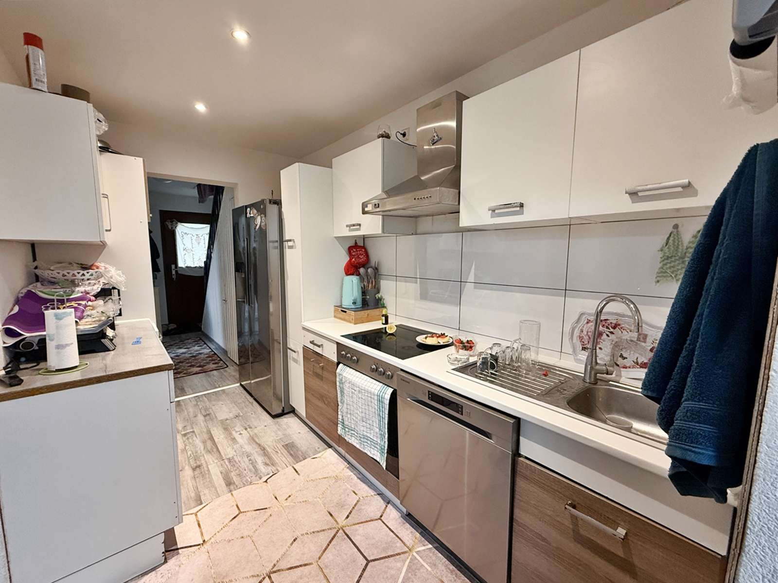 Im Erdgeschoss stehen Ihnen zwei gut geschnittene Zimmer zur Verfügung, die flexibel als Wohn- und Essbereich oder als Wohn- und Arbeitszimmer genutzt werden können. Die Küche befindet sich ebenfalls auf dieser Ebene und ist mit einer Einbauküche ausgestattet. Ein separates WC sorgt auf dieser Ebene für zusätzlichen Komfort und kurze Wege im Alltag.