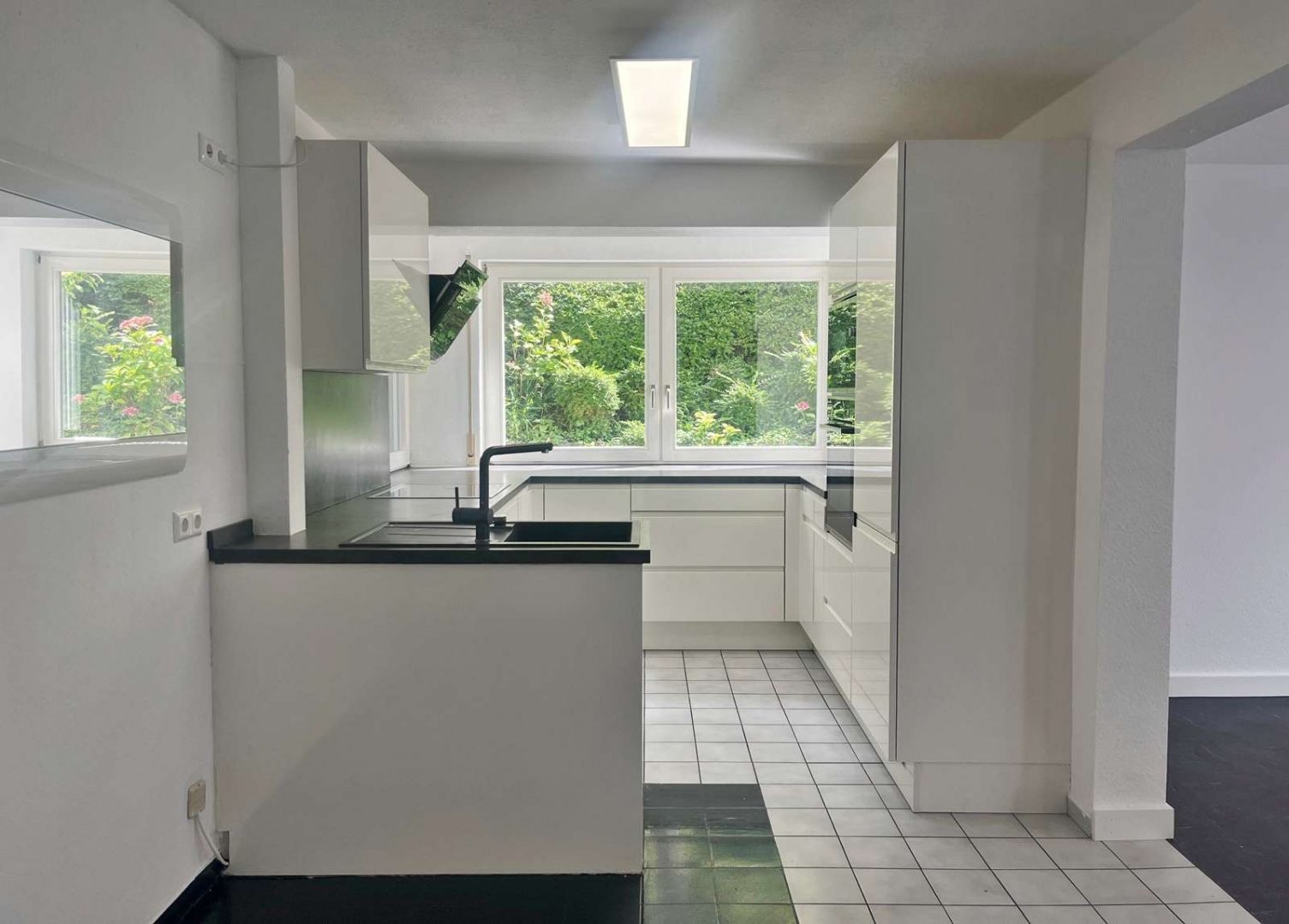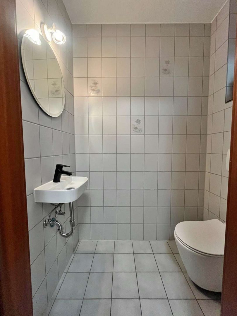 Ein besonderes Highlight ist die sonnige Süd-Terrasse mit ca. 25 m², ideal zum Entspannen oder für gemütliche Stunden im Freien. Die Wohnung gliedert sich in eine einladende Diele mit Fliesenboden, einen großzügigen, lichtdurchfluteten Wohn- und Essbereich mit Zugang zur Terrasse sowie eine modern ausgestattete Einbauküche mit hochwertigen Elektrogeräten, die im Kaufpreis enthalten sind. Das helle Schlafzimmer bietet ausreichend Platz für Bett und Schrank. Ein separates WC sowie ein frisch 2025 saniertes Badezimmer mit Badewanne, Dusche und Waschbecken, jeweils deckenhoch gefliest, ergänzen das Raumangebot.
